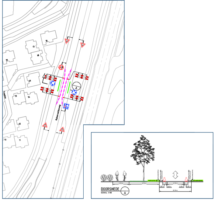 - Dat er na het aanbrengen van de versmalling voldoende verkeersruimteoverblijft om voertuigen veilig te laten passeren;