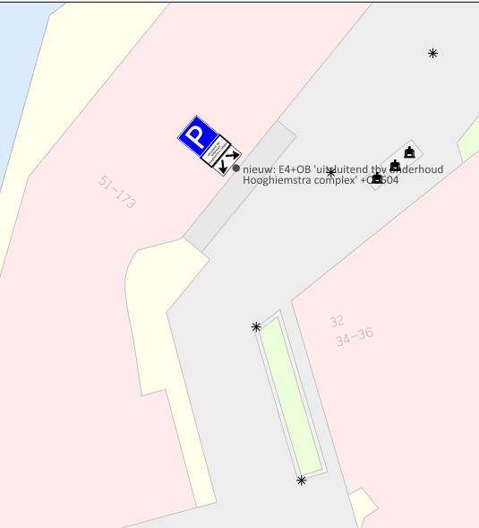 Vaststellen: Parkeergelegenheid (bord E4 met onderbord "uitsluitend t.b.v. onderhoud Hooghiemstra complex" en OB504)
