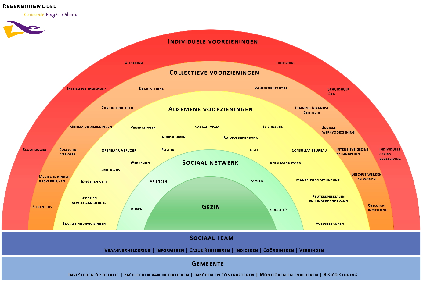 De gemeente Borger-Odoorn werkt in haar beleid met het onderstaande Regenboogmodel.