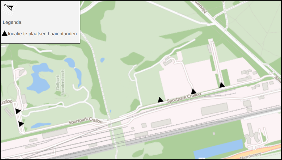 Door het aanbrengen van zelfstandige haaientanden volgens artikel 80 van het RVV 1990 aan de weg Sportpark Crailoo op de zijtakken van de weg Sportpark Crailoo, waarbij bestuurders die het T-kruispunt naderen vanuit de zijtakken voorrang dienen te verlenen aan bestuurders op de doorgaande weg Sportpark Crailoo.