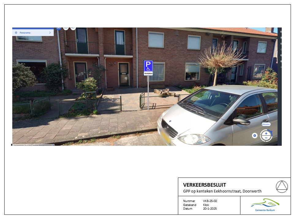 Verkeersbesluit – Vaststellen gehandicaptenparkeerplaats op kenteken – Eekhoornstraat - Doorwerth