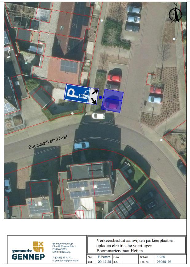 AANWIJZEN PARKEERPLAATSEN VOOR OPLADEN ELEKTRISCH VOERTUIGEN BOOMMARTERSTRAAT HEIJEN