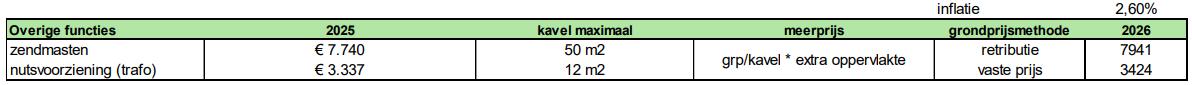 Voor nutsvoorzieningen (trafo-ruimten, overslagstations, etc.) geldt een grondprijs van