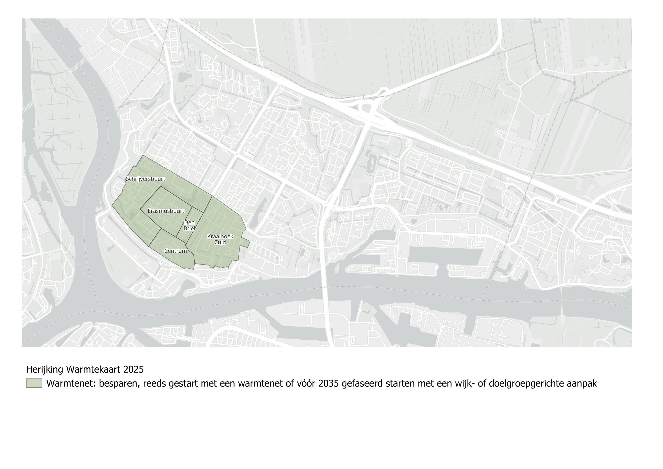 In dit Warmteprogramma staat in welke buurten we de komende tien jaar willen beginnen met een warmtenet. Dat zijn: de Erasmusbuurt, Den Briel, Centrum, Kraaihoek-Zuid en de Schrijversbuurt. In elke buurt maken we een plan op maat. Dat doen we samen met u. En we starten pas als het kan.
