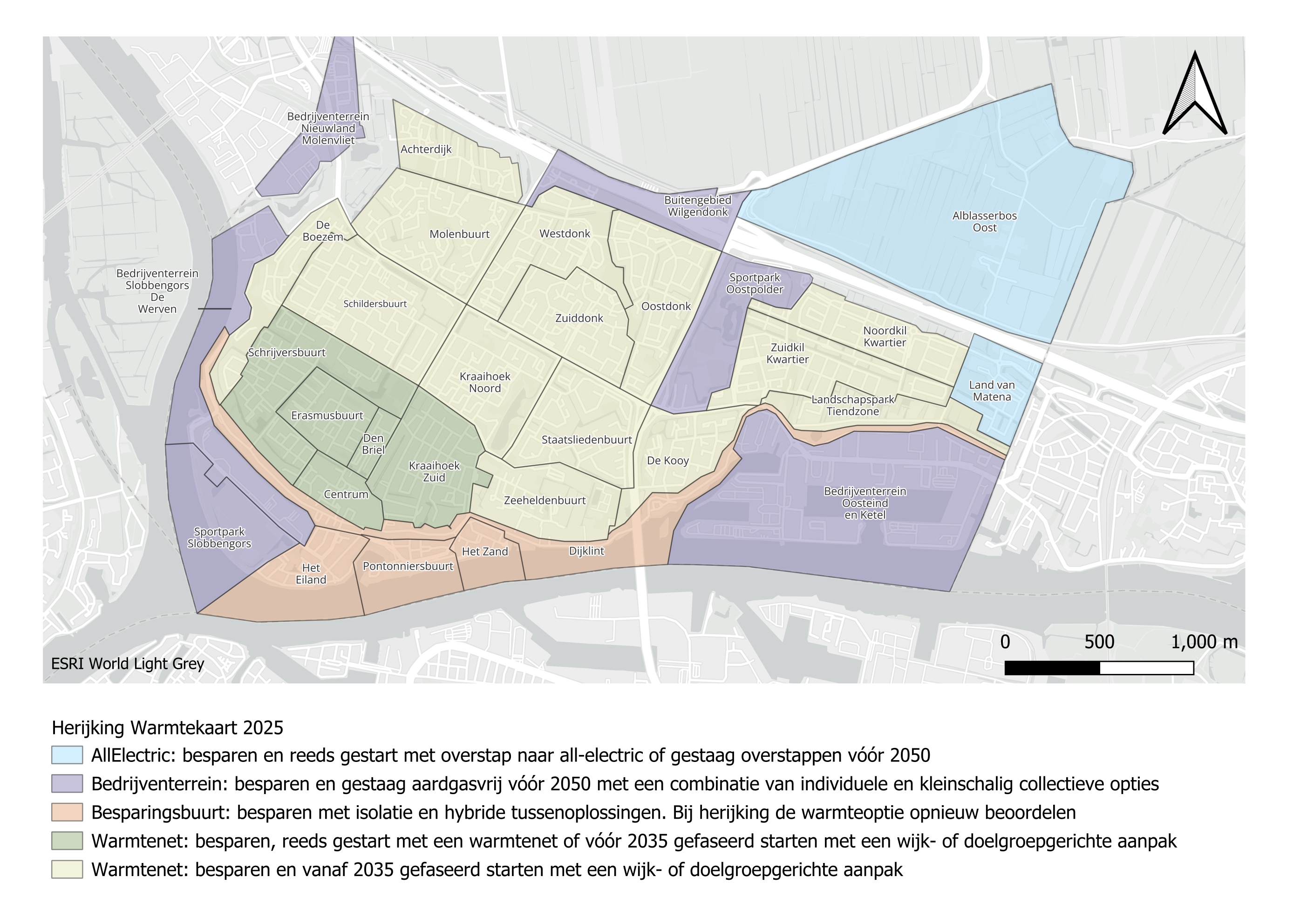 De beoogde infrastructuur voor aardgasvrije warmtelevering per buurt.