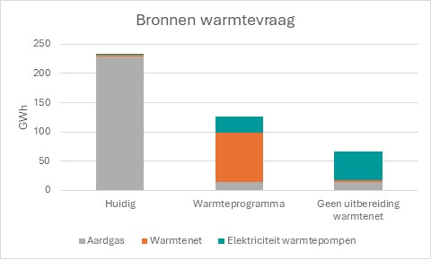 Te maken warmte: duurzaam gas. Een mogelijke bron op de zeer lange termijn en dan met name voor de historische binnenstad met monumenten waar het warmtenet niet komt en die niet voldoende geïsoleerd kunnen worden.