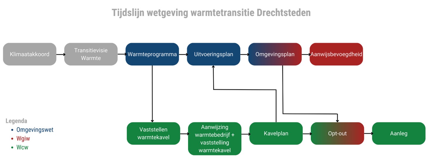 Daarnaast krijgt de gemeente uit de toekomstige Wet collectieve warmte (Wcw) en de Wet gemeentelijke instrumenten warmtetransitie (Wgiw) de instrumenten in handen die noodzakelijk zijn om de warmtetransitie te versnellen. De Wcw geeft de gemeente de bevoegdheid om gebieden aan te wijzen die van aardgas overstappen naar een collectieve warmteoplossing en om te bepalen wie dat exploiteert. Met de Wgiw krijgt de gemeente de aanwijsbevoegdheid voor het beëindigen van het aardgastransport binnen een bepaalde termijn. In hoofdstuk 4 geven we duidelijkheid over de toepassing van de Wgiw en Wcw in onze gemeente.