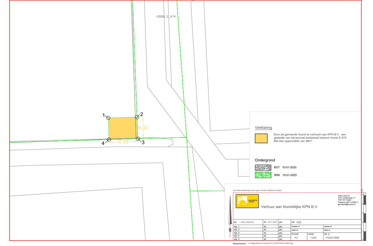 De gemeente Voorst is van plan om een perceel gemeentegrond nabij de Rijksstraatweg 22 in Wilp met de kadastrale aanduiding gemeente Voorst, sectie S, nummer 475 en een oppervlakte van 48 m² aan één gegadigde, Althio B.V. (KPN), te verhuren (met opstalrecht) voor een mast-, antenne- en opstelruimte waar een zend- en ontvangstmast (hierna te noemen: de mast) geplaatst kan worden.