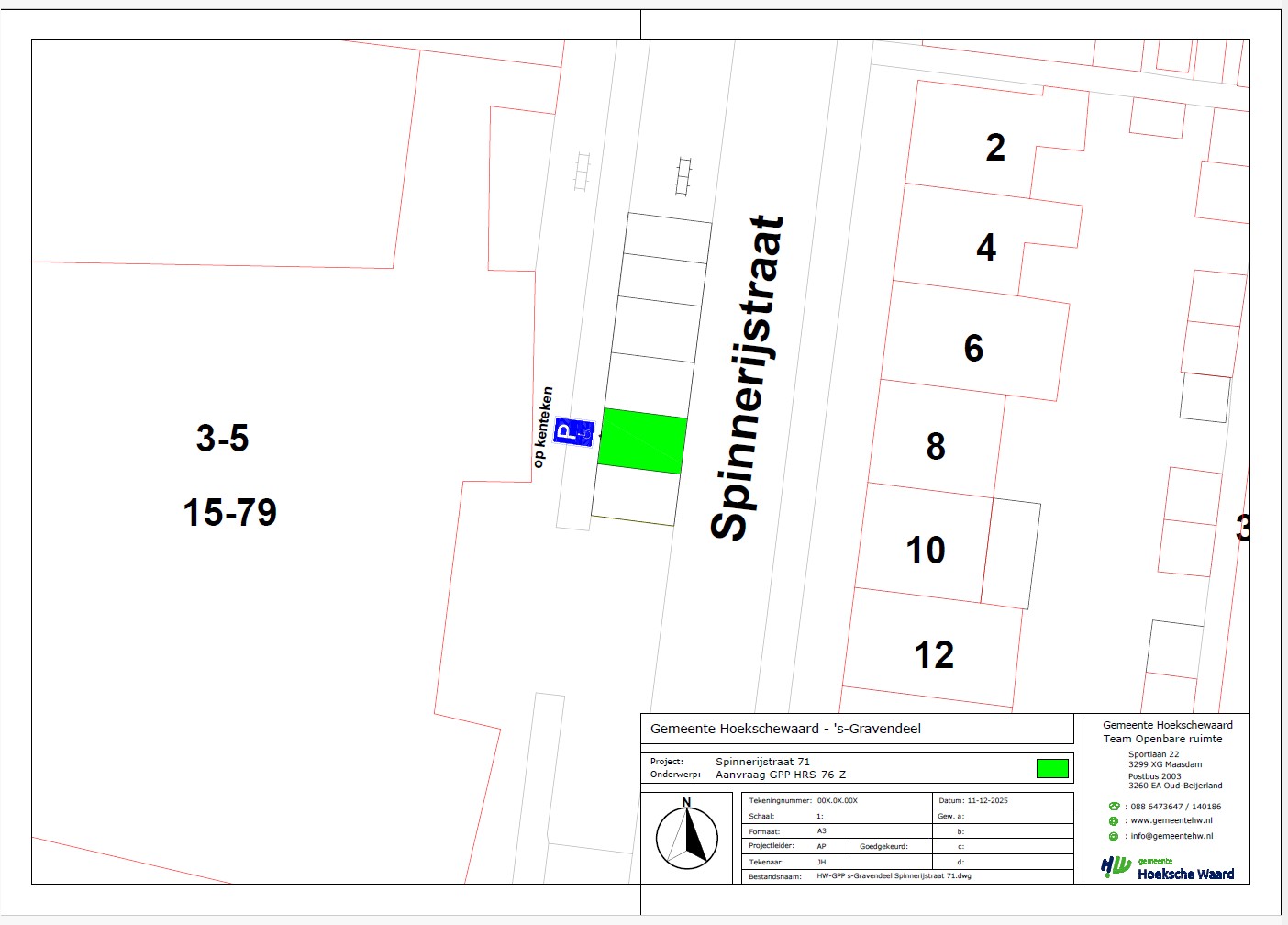 Realisatie gehandicaptenparkeerplaats op kenteken Spinnerijstraat Gravendeel