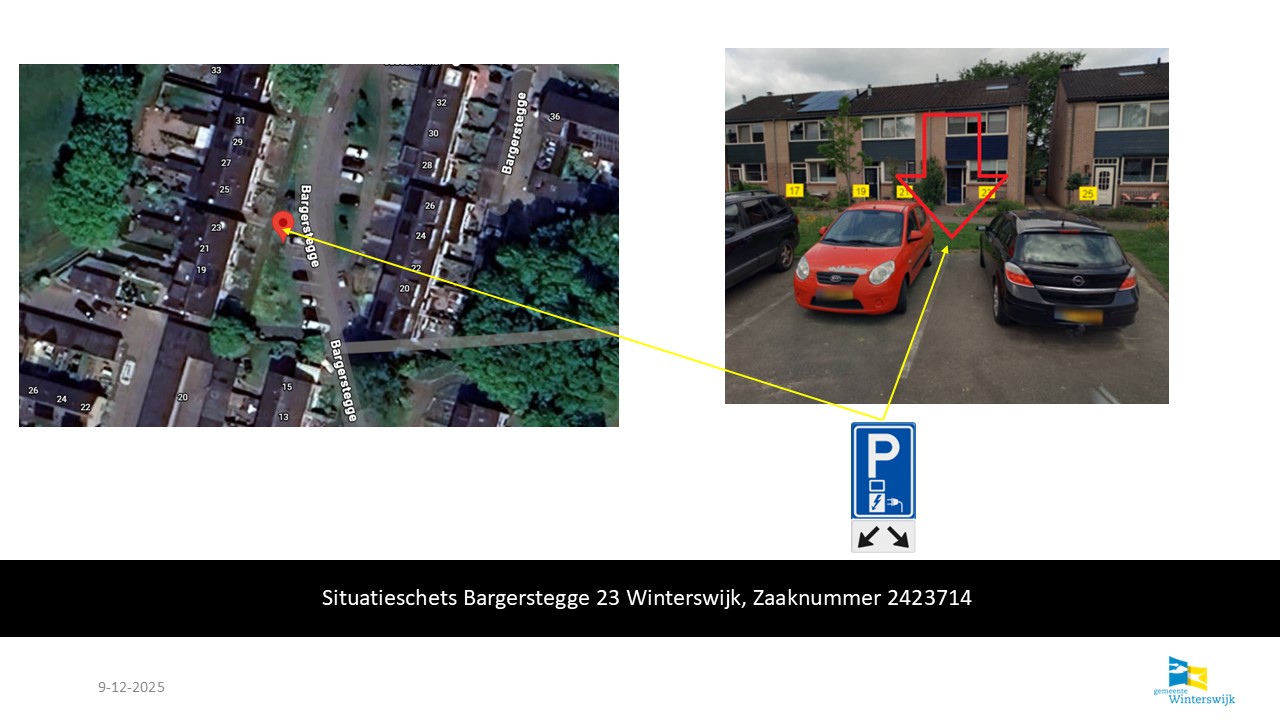 • Het aanwijzen van parkeerplaatsen waar alleen geparkeerd mag worden ten behoeve van het opladen van een elektrisch voertuig van bewoners en bezoekers in de omgeving van de Bargerstegge ter hoogte van het huisnummer 23 te Winterswijk. Dit doormiddel van het plaatsen van het verkeersbord E8c conform bijlage 1, behorende bij het Regelement Verkeersregels en Verkeerstekens 1990 (RVV 1990) en onderbord OB504.