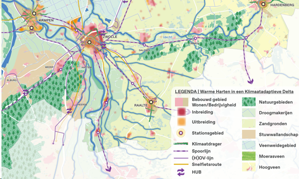 Met deze uitgangspunten past de planontwikkeling bij de opgave die in de Nationale Omgevingsvisie (NOVI) is geduid, namelijk het waarborgen en bevorderen van een gezonde en veilige fysieke leefomgeving, zie paragraaf 4.1.1. Dit heeft zich ook vertaald in de gemeentelijke omgevingsvisie waar naast het bouwen van woningen ook het verbeteren van verbindingen tussen wijken, het bevorderen van de gezondheid van de inwoners en het inrichten van de openbare ruimte voor ontmoeten en bewegen centraal staat. Kortom, een toekomstbestendig Kampen. Dit alles komt samen in onderhavig plan. Door het wegnemen van de huidige gasverbruikende functies wordt de CO2 uitstoot daarnaast in de toekomst verkleind wat past bij de actuele klimaatdoelstellingen.