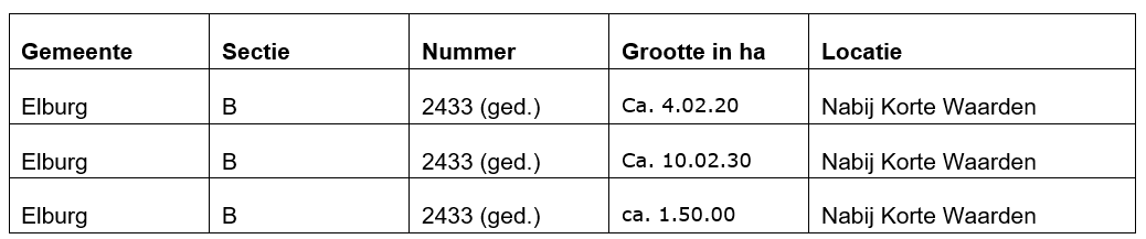 De gemeente Elburg is voornemens om met ingang van 1 januari 2026 tot en met 31 december 2026 een kortlopende (geliberaliseerde) pachtovereenkomst te sluiten met de huidige pachter van de Grond. Naar het oordeel van de gemeente is de huidige pachter van de Grond de enige serieuze gegadigde die in aanmerking komt voor de kortlopende pachtovereenkomst voor na 31 december 2025.