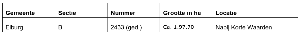 De gemeente Elburg is voornemens om met ingang van 1 januari 2026 tot en met 31 december 2026 een kortlopende (geliberaliseerde) pachtovereenkomst te sluiten met de huidige pachter van de Grond. Naar het oordeel van de gemeente is de huidige pachter van de Grond de enige serieuze gegadigde die in aanmerking komt voor de kortlopende pachtovereenkomst voor na 31 december 2025.