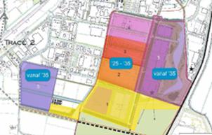 Oranje: Het plan heeft (eventueel onder voorwaarden) bestuurlijke instemming verkregen, maar het plan is nog onvoldoende concreet en/of stuit op bewaren vanuit ruimtelijke ordening en/of past nu niet binnen de ‘programmering’, en/of de behoefte is (nog) niet aangetoond. Het plan kan een groene status krijgen als van bovenstaande punten geen sprake meer is. Tot die tijd wordt nog niet ingezet op ontwikkeling.
