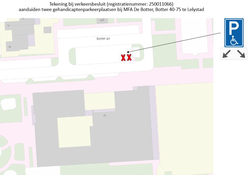 Verkeerbesluit aanduiden twee gehandicaptenparkeerplaatsen bij MFA De Botter, Botter 40-75 te Lelystad