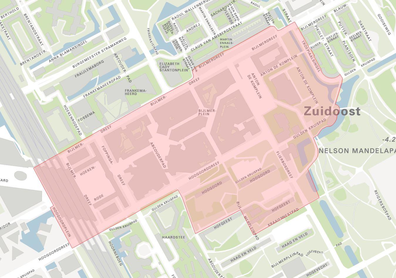 dat op grond van art. 2.17, tweede lid van de Algemene Plaatselijke Verordening (APV) een alcoholverbodsgebied is aangewezen voor de winkelcentra Amsterdamse Poort, Ganzenpoort, Gein, Holendrecht, De Kameleon, Reigersbos en Venserpolder en de directe omgeving van deze winkelcentra;