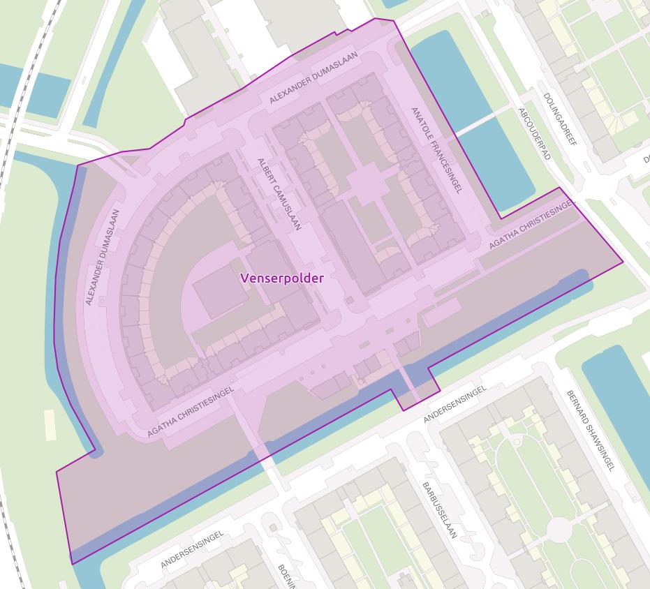 (aan de noordzijde) de straat parallel aan het Puiflijkpad, van de kruising van het Puiflijkpad met de Papendrechtstraat diagonaal tot de kruising van de Passewaaigracht en de Renswoudestraat, in noordelijke richting tot het viaduct, in westelijke richting tot de rotonde op de S112 die kruist met de Reigersbosdreef.