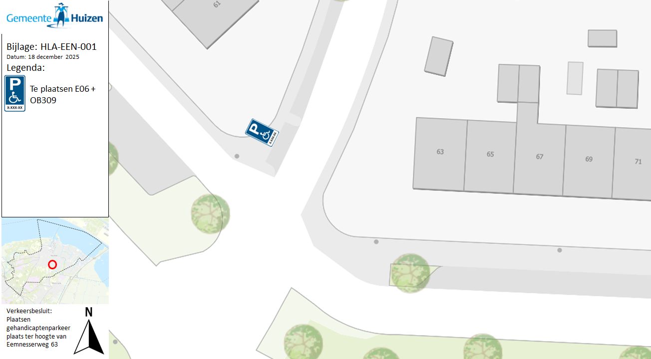 Verkeersbesluit gehandicaptenparkeerplaats plaatsen op kenteken Eemnesserweg 63 te Huizen