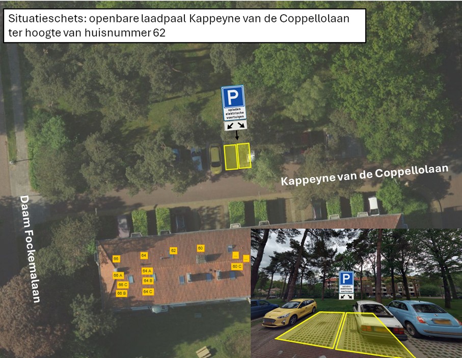 om op de Kappeyne van de Coppellolaan ter hoogte van huisnummer 62 twee parkeervakken gelegen bij het oplaadpunt voor elektrische voertuigen aan te wijzen als parkeerplaats voor het opladen van elektrische voertuigen, volgens de bijlage bij dit besluit;