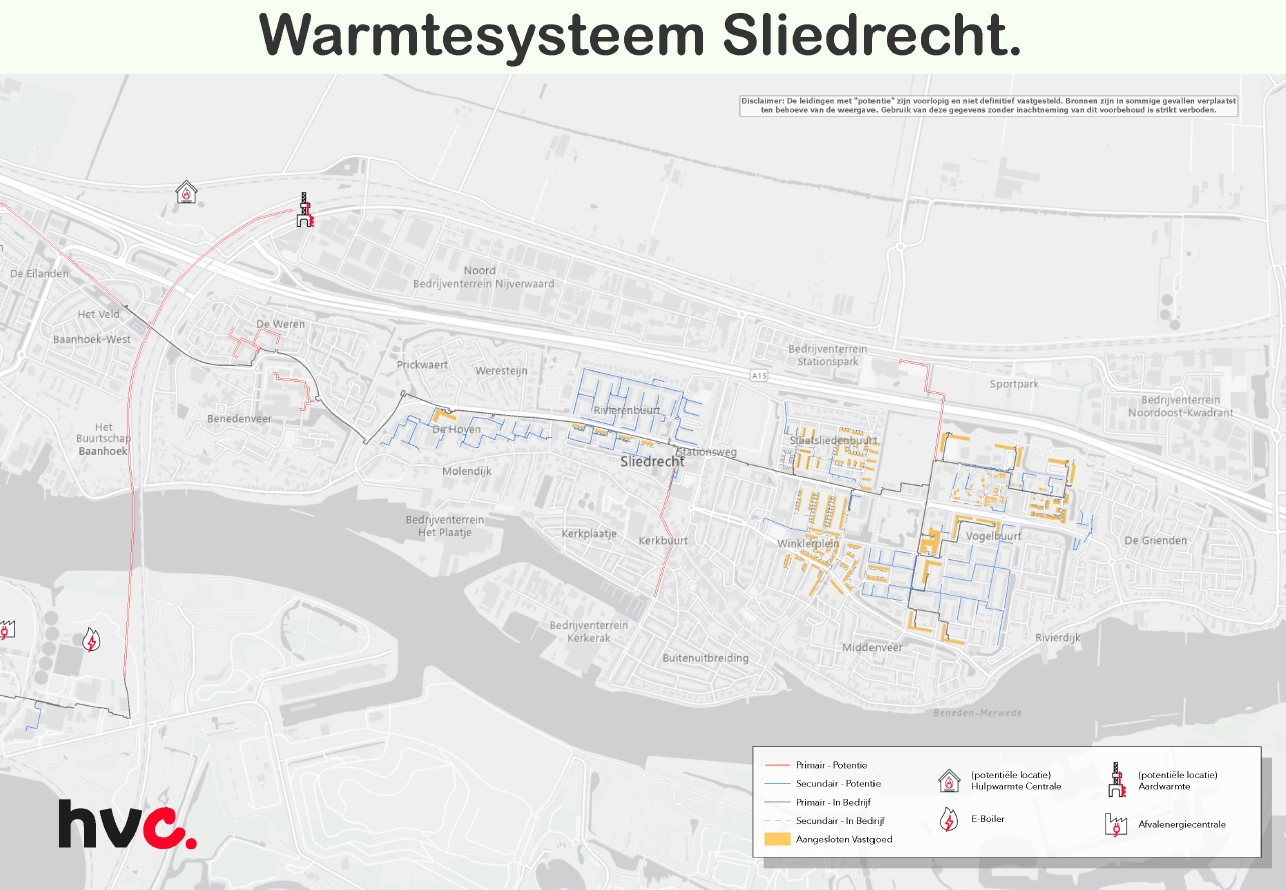 Sinds 2018 zijn in Sliedrecht in totaal 1.836 woningen op het HVC-warmtenet aangesloten (peildatum 1 juli 2025) waarvan zo’n 800 woningen tussen 2021 en 2025, met een verwachting van circa 2.500 aansluitingen tegen eind 2025. Woningcorporatie Tablis Wonen sloot 15 hoogbouwflats in Vogelbuurt-Noord en -Zuid aan, en in 2024 maakte de Sperwerflat (80 particuliere appartementen) de stap naar volledig aardgasvrij. Medio 2025 volgen de eerste particuliere grondgebonden huizen. In 2024 is bovendien gestart met de boring onder de Merwede om restwarmte van het Dordtse slibverbrandingsstation beschikbaar te maken voor Sliedrecht (stookseizoen 2025) en werden voorbereidingen getroffen om te starten met een eerste wijkuitvoeringsplan.