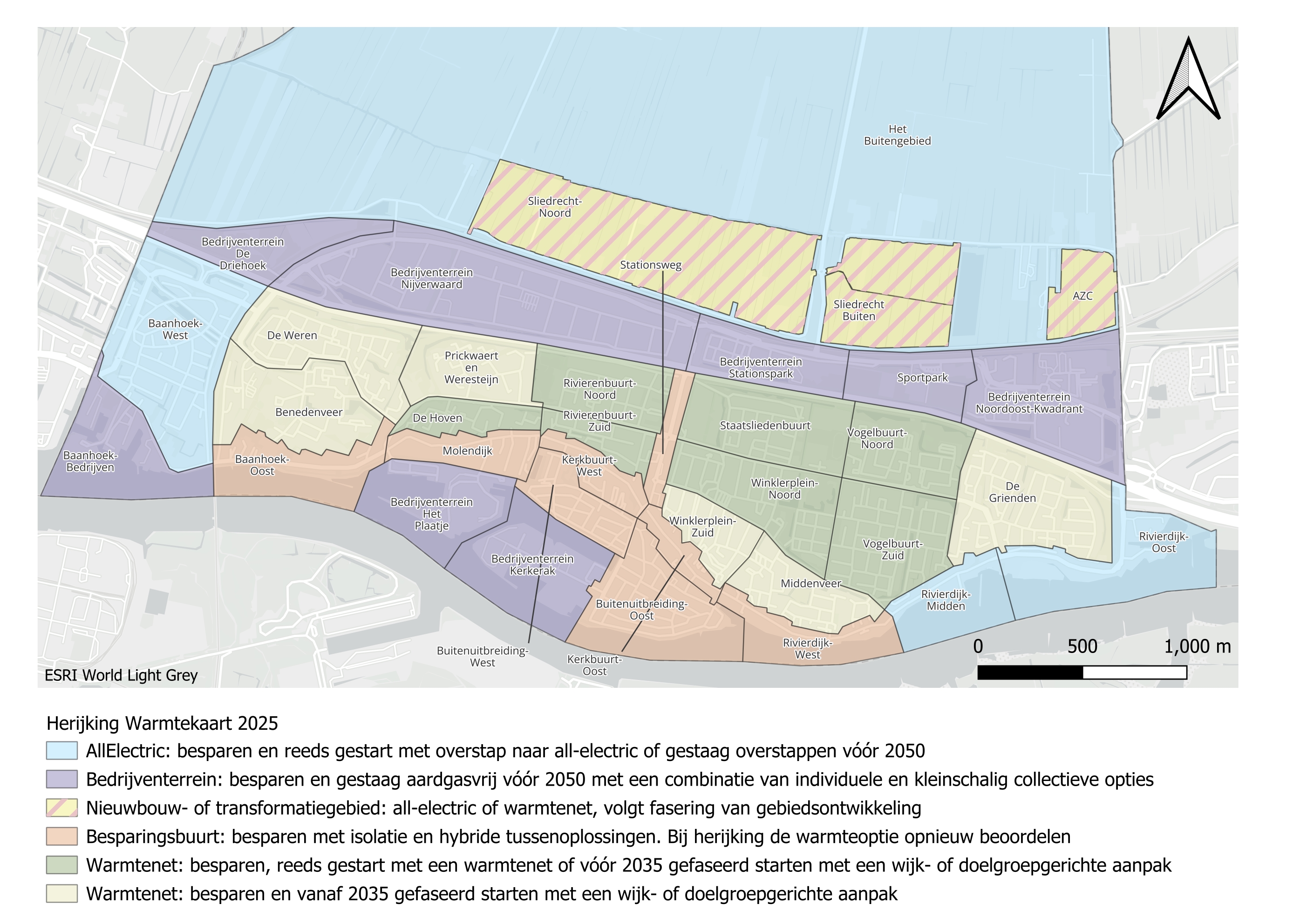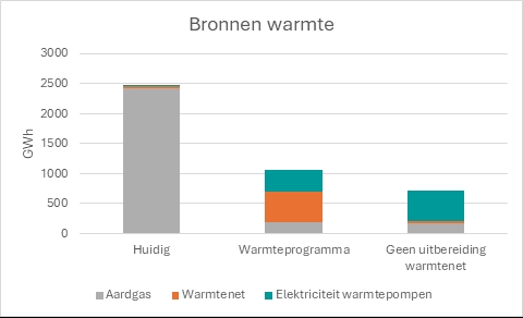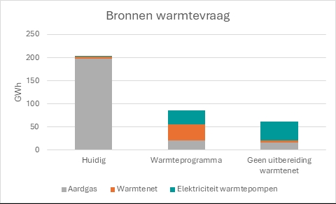 De beoogde infrastructuur voor aardgasvrije warmtelevering per buurt.