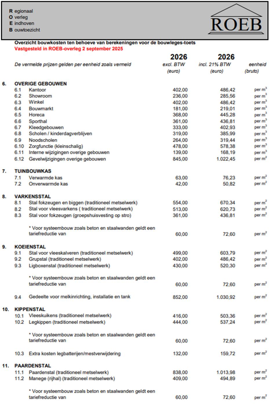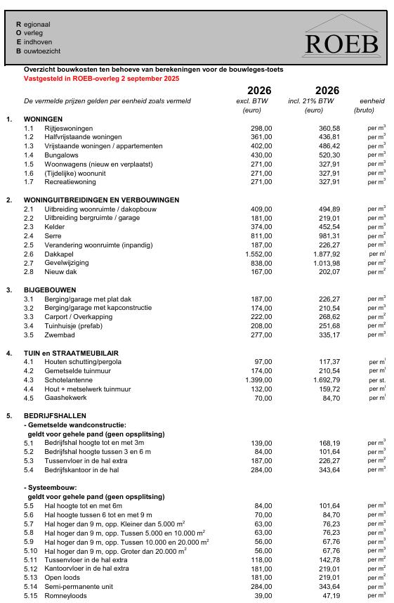 Het tarief bedraagt ter zake van het in behandeling nemen van een aanvraag tot het verkrijgen van een ontheffing geluidhinder op grond van artikel 4.6 van de Algemene plaatselijke verordening 2026 of een ontheffing geluidshinder op grond van art. 7.17 van het Besluit bouwwerken leefomgeving voor nachtelijke werkzaamheden binnen, bijv. het vlinderen van een betonvloer.