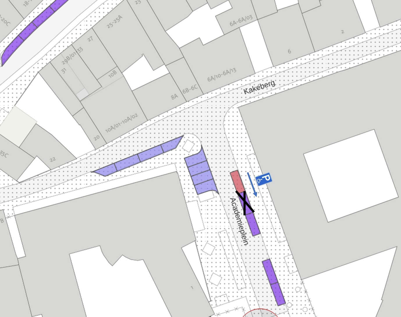 Aan de Academieplein is een algemene gehandicaptenparkeerplaats aangewezen in het meeste noordelijke langsparkeervak van de straat.