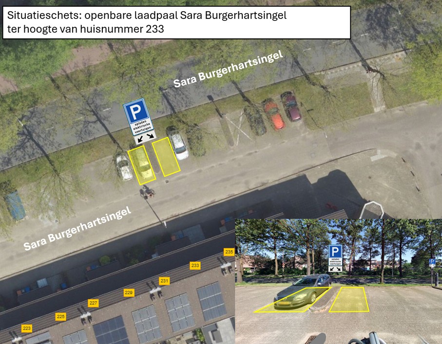 Verkeersbesluit gemeente Amersfoort, wijk Schothorst: aanwijzen van parkeervakken voor het elektrisch laden van voertuigen aan Sara Burgerhartsingel ter hoogte van huisnummer 233