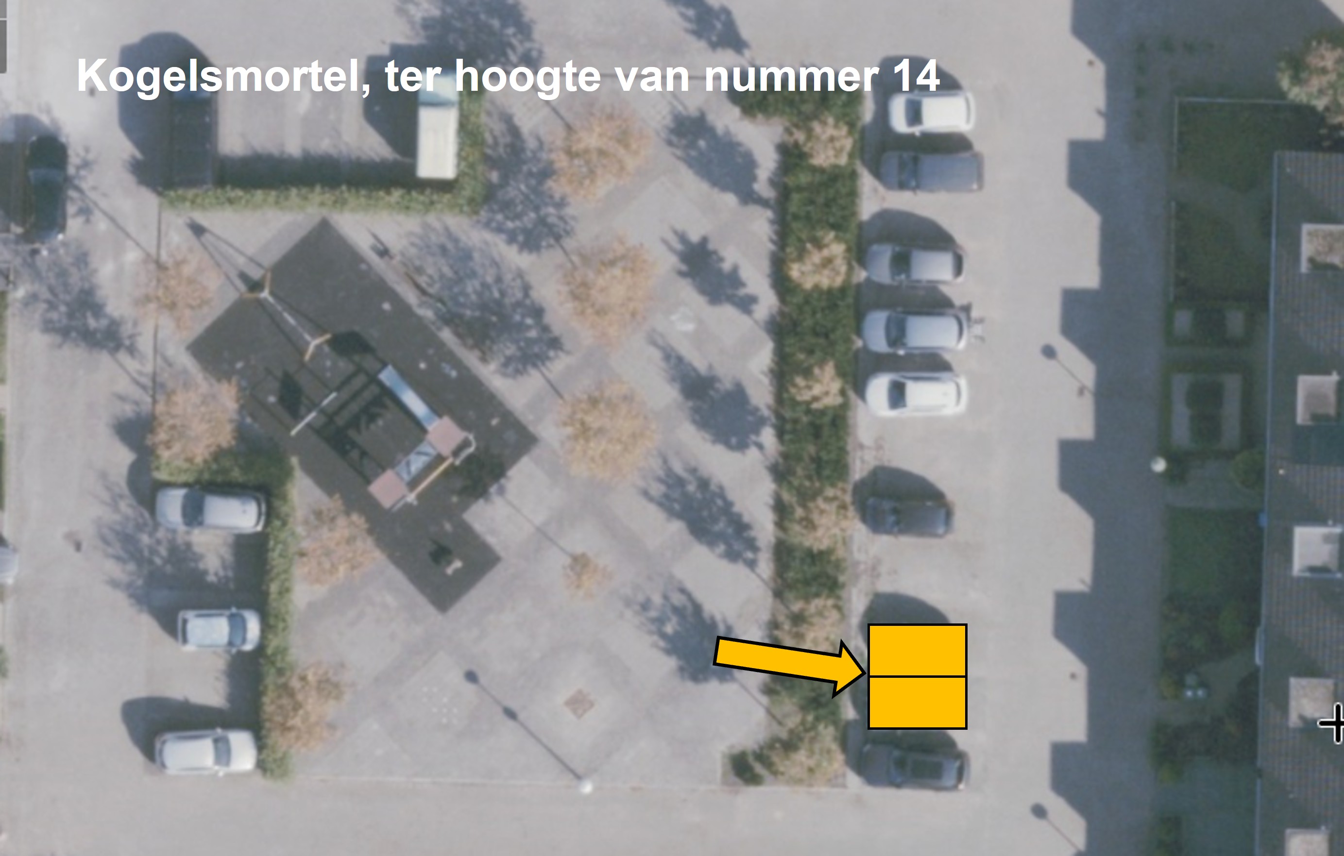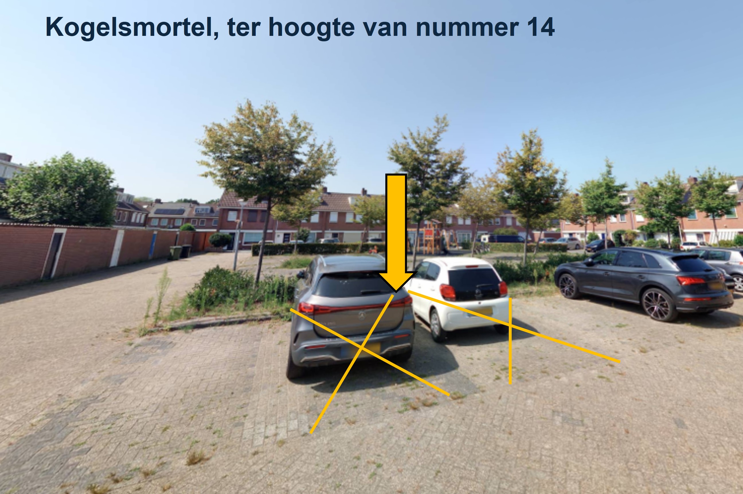 Ten aanzien van de locatie Kogelsmortel, ter hoogte van nummer 14, wordt het linker parkeervak zoals is bestemd in het besluit van 20 oktober 2025 in een separaat besluit bestemd als gehandicaptenparkeerplaats op kenteken. De locatie zoals eerder aangewezen is in het verkeersbesluit van 20 oktober 2025 is voor het laden van elektrische voertuigen niet meer zodanig bruikbaar. De aanwijzing van de betreffende twee parkeervakken wordt met dit besluit daarom ingetrokken. Gezocht is naar een alternatieve locatie in de straat. Ter verduidelijking van dit besluit wordt de nieuwe locatie aangeduid in de bijgevoegde foto’s. Voor de motivering en belangenafweging ten aanzien van het bestemmen van de twee parkeergelegenheden wordt verwezen naar het oorspronkelijke besluit, genomen op 20 oktober 2025. De betreffende tekst moet als hier ingelast worden beschouwd.