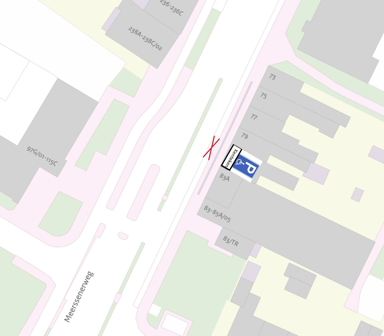 Er is een verzoek ingediend om een individuele gehandicaptenparkeerplaats te reserveren in de Meerssenerweg, ter hoogte van huisnummer 81. De aanvrager kan zich namelijk niet of slechts met grote moeite anders dan over een korte afstand te voet voortbewegen.