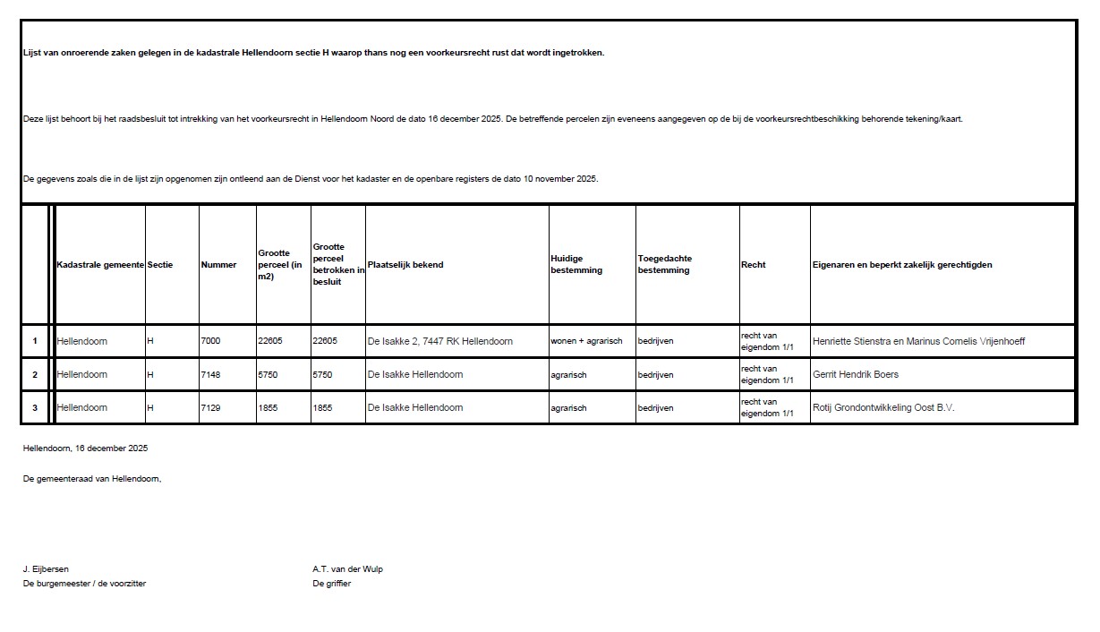 Titel Kennisgeving intrekking voorkeursrecht Hellendoorn Noord - gemeente Hellendoorn
