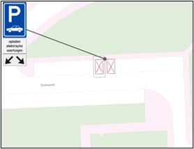 Een parkeergelegenheid nabij Dudokpark 1 wordt gezien als een goede locatie voor het plaatsen van een oplaadpaal. Het is noodzakelijk bij de oplaadpaal twee parkeervakken aan te wijzen als parkeergelegenheid alleen bestemd voor het opladen van elektrische voertuigen - personenauto’s. Deze parkeergelegenheid wordt aangeduid door middel van bord E8 (personenauto) van bijlage 1 van het RVV 1990 met een onderbord met de tekst: ’uitsluitend opladen elektrische voertuigen’ en een pijlonderbord waaruit blijkt dat het bord bestemd is voor twee parkeervakken.