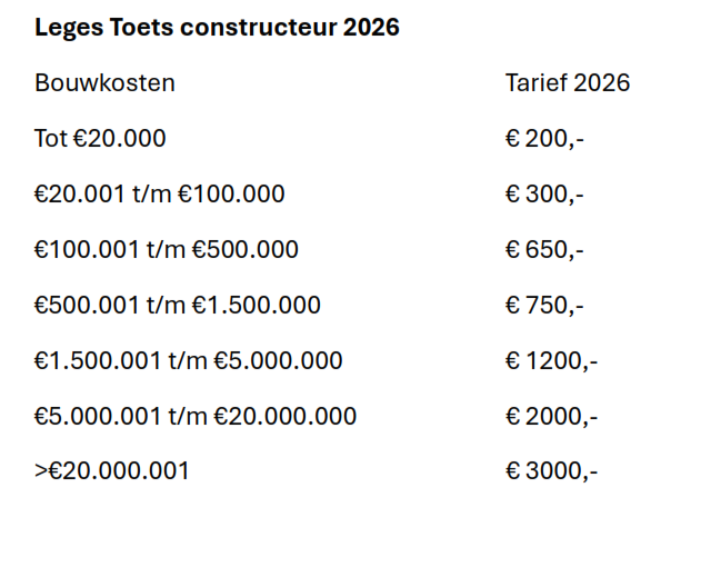 Het tarief bedraag voor het verstrekken van: