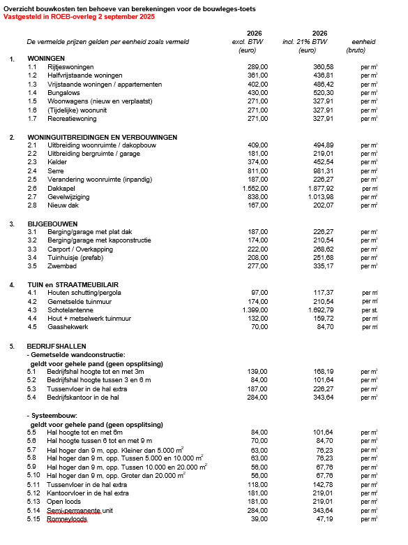 de vergunningen, bedoeld onder artikel 2.6 van de Tarieventabel, die na tevoren reeds verleend, doch ingetrokken of vervallen zijn, andermaal verleend worden en de vergunningen, bedoeld in die nummers artikel 2.6 welke dienen ter vervanging van dezelfde doch voor een bepaalde proeftijd verleende vergunningen, een en ander indien geen uitbreiding of verandering van de oorspronkelijke aanvrage heeft plaatsgehad en evenmin terugbetaling ter zake op grond van het nummer artikel 2.6 is geschied, noch de begroting van kosten, bedoeld in nummer artikel 2.6 wegens stijging der bouwkosten is verhoogd, in welk geval de leges naar de nieuwe kostenbegroting worden berekend onder verrekening van de reeds betaalde leges.