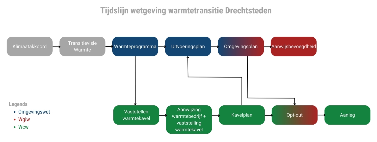 Daarnaast krijgt de gemeente uit de toekomstige Wet collectieve warmte (Wcw) en de Wet gemeentelijke instrumenten warmtetransitie (Wgiw) de instrumenten in handen die noodzakelijk zijn om de warmtetransitie te versnellen. De Wcw geeft de gemeente de bevoegdheid om bestaande gebieden aan te wijzen die van aardgas overstappen naar een collectieve oplossing en om te bepalen wie dat exploiteert. Met de Wgiw krijgt de gemeente de aanwijsbevoegdheid voor het beëindigen van het aardgastransport voor alle oplossingen binnen een bepaalde termijn. In hoofdstuk 4 geven we duidelijkheid over de toepassing van de Wgiw en Wcw in onze gemeente.