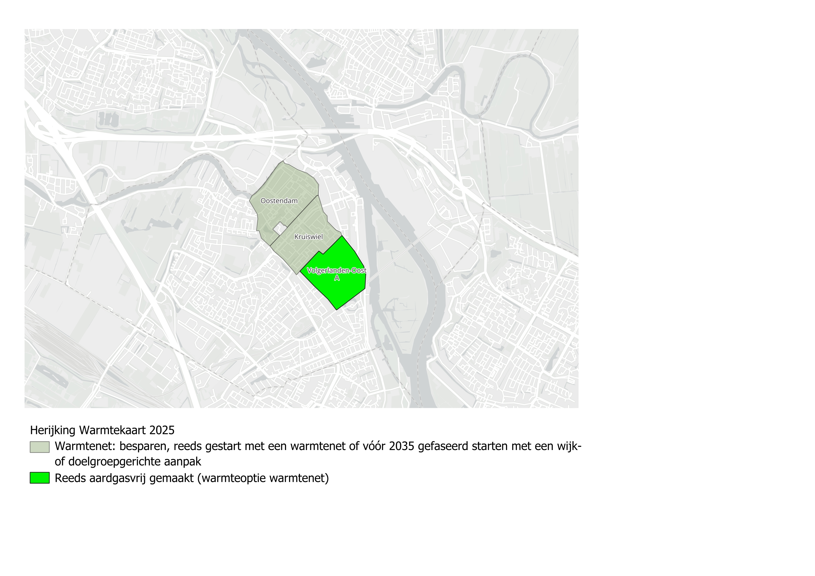 De beoogde infrastructuur voor aardgasvrije warmtelevering per buurt.