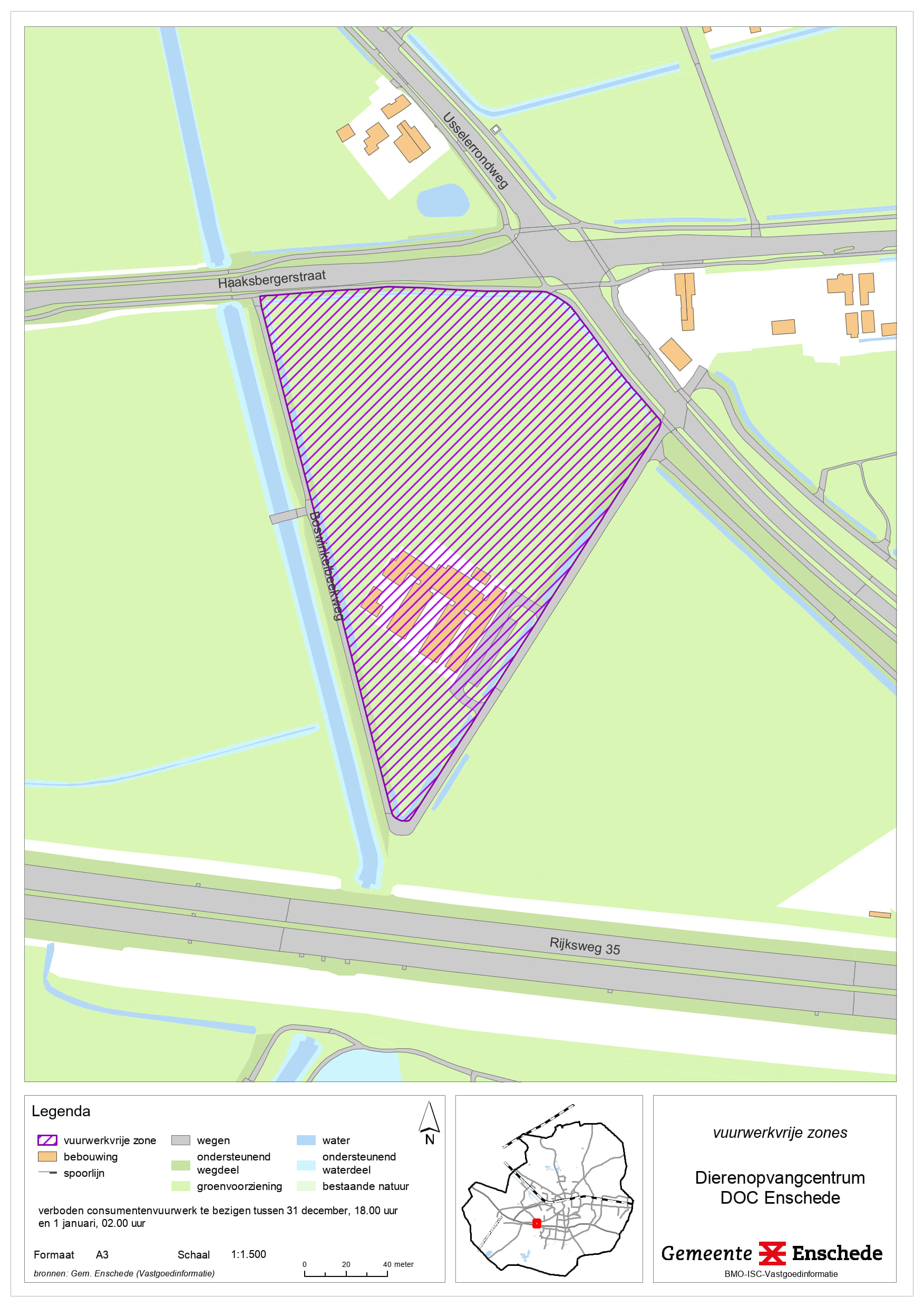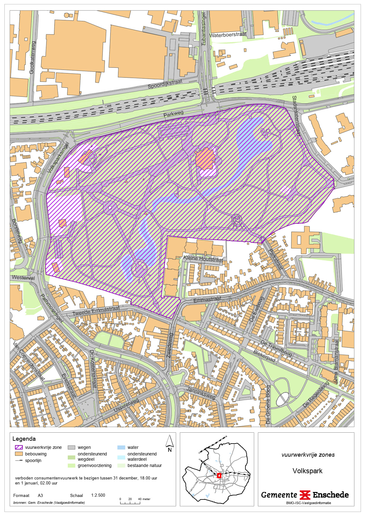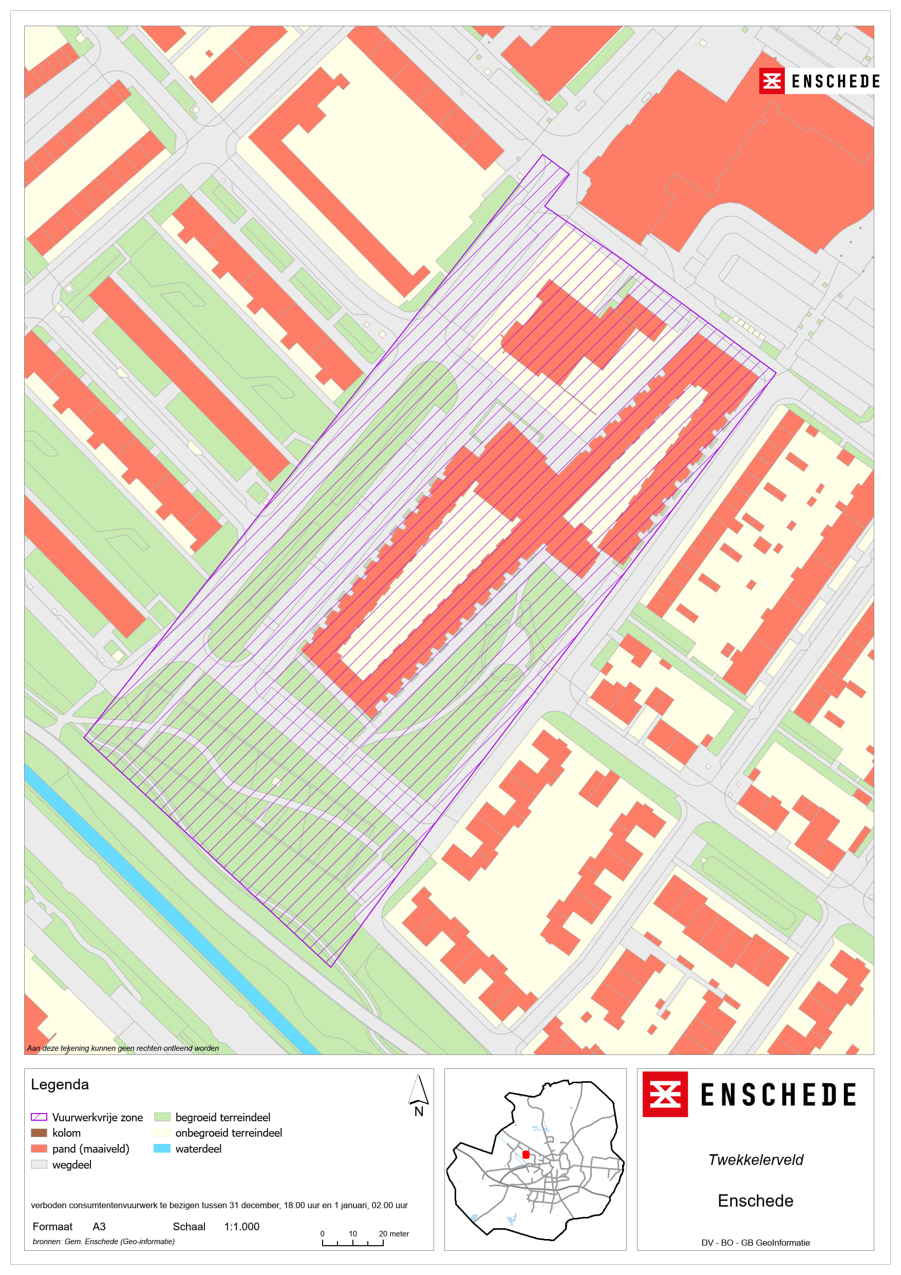 • De vuurwerkvrije zones worden aangewezen voor het gebied bij het ziekenhuis Medisch Spectrum Twente (MST), het dierenopvangcentrum en de kinderboerderijen De Wesseler en Noord, Wooldrikpark, Het Volkspark, J. van Heekpark, Ledeboerpark, Lumen en omgeving, sporthal de Brug en omgeving, Erve ’t Stroink, Ecopark De Eschmarke woonzorgcentrum Twekkelerveld, Manege ’t Roessingh en Zweringbeekpark