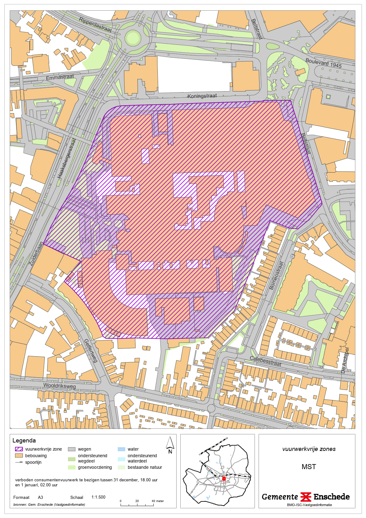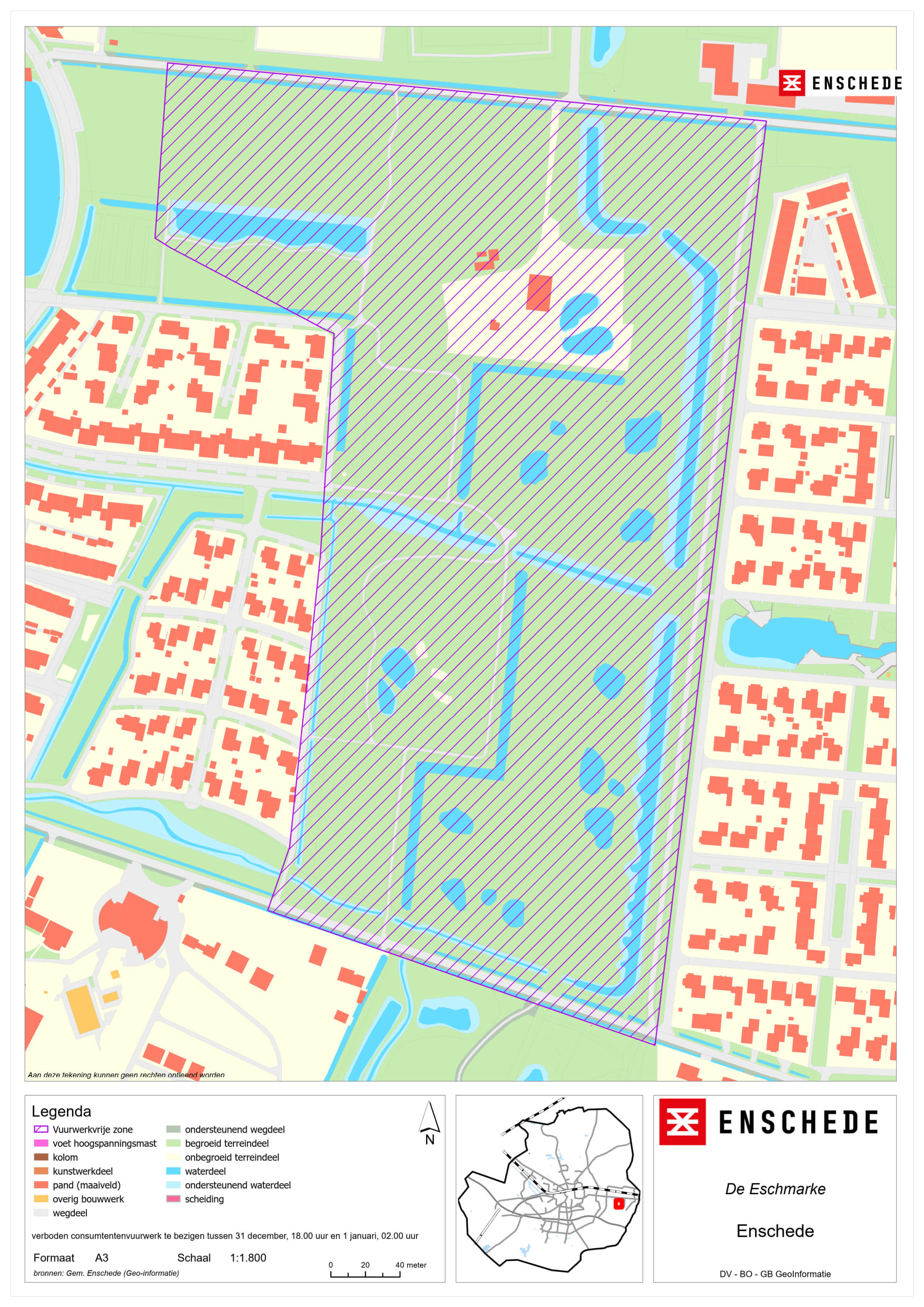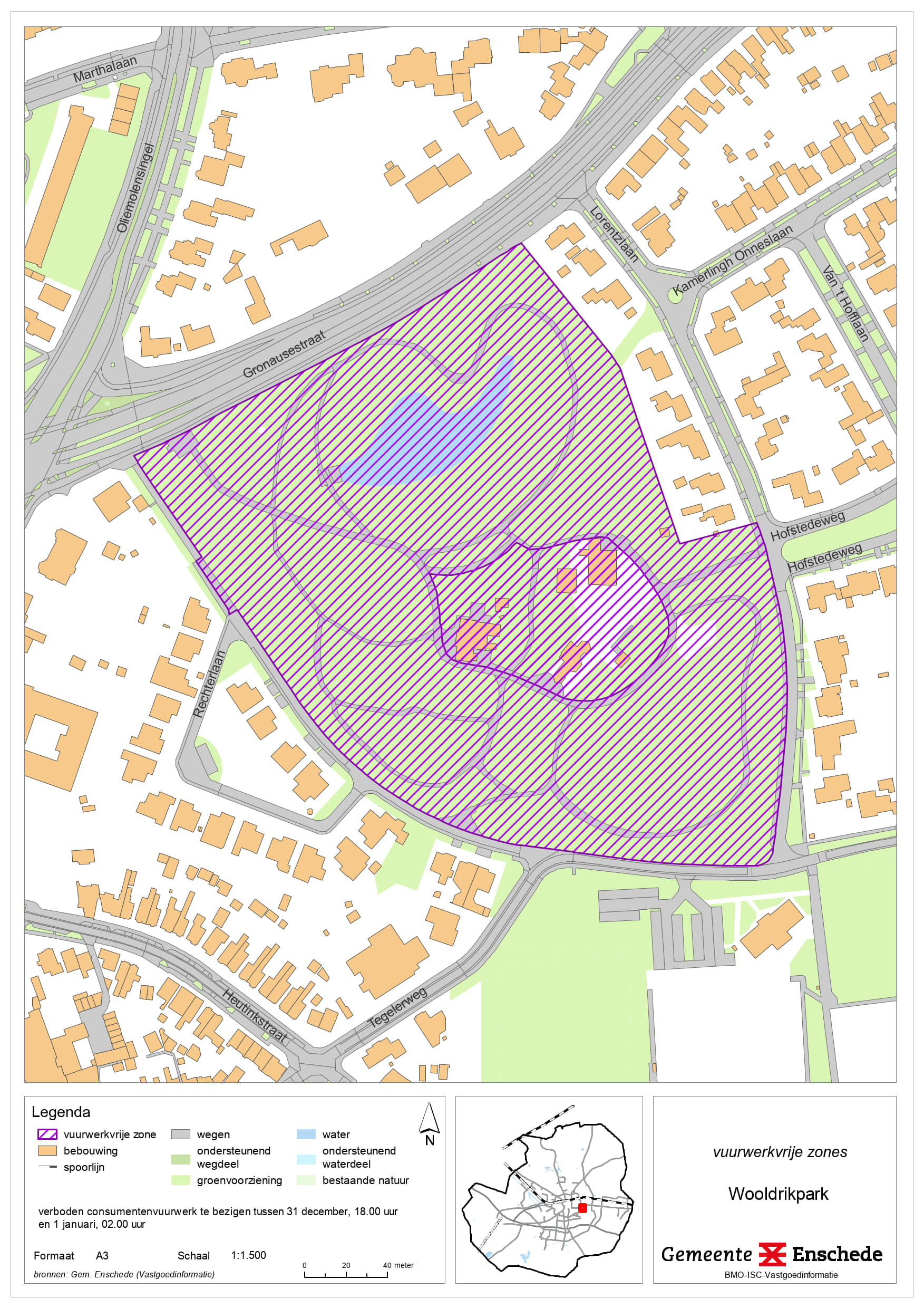 • De vuurwerkvrije zones worden aangewezen voor het gebied bij het ziekenhuis Medisch Spectrum Twente (MST), het dierenopvangcentrum en de kinderboerderijen De Wesseler en Noord, Wooldrikpark, Het Volkspark, J. van Heekpark, Ledeboerpark, Lumen en omgeving, sporthal de Brug en omgeving, Erve ’t Stroink, Ecopark De Eschmarke woonzorgcentrum Twekkelerveld, Manege ’t Roessingh en Zweringbeekpark