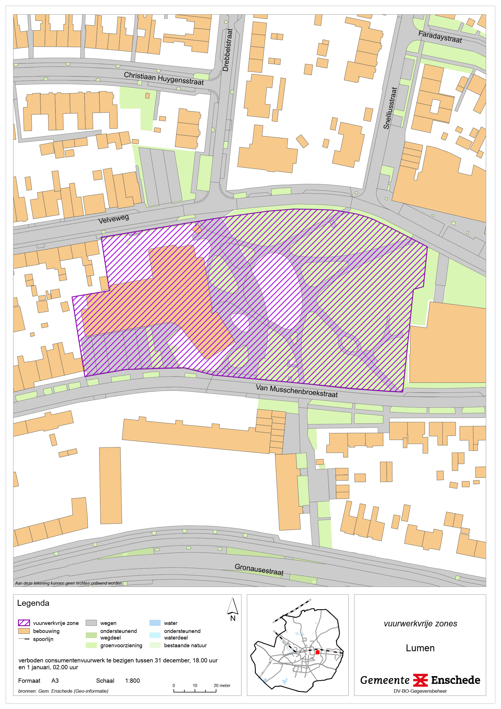 • Het ingevolge artikel 12.11 van de Verordening kwaliteit leefomgeving Enschede (hierna VKL) verboden is consumentenvuurwerk te bezigen op een door het college in het belang van de voorkoming van gevaar, schade of overlast aangewezen plaats;