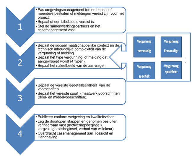 2. Uitvoeringstrategie: De uitvoering van vergunningen en meldingen moet transparant en tijdig gebeuren. De overheid moet zorgen voor goede en handhaafbare vergunningen en samenwerken met andere instanties.
