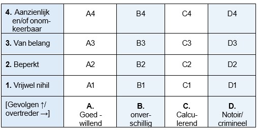 • Het gedrag van de overtreder. Een calculerende overtreder heeft een sterkere prikkel nodig om zich aan de regels te houden dan een goedwillende.
