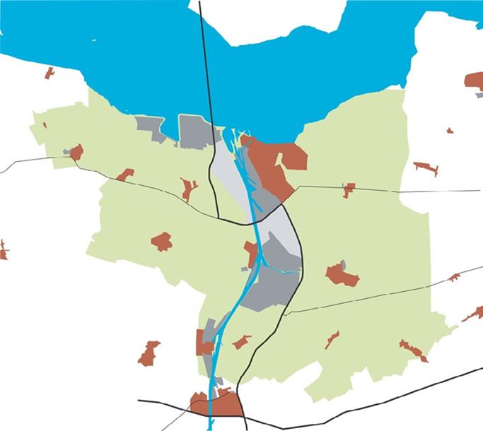 De hoofdas voor zowel industrie als infrastructuur is de Kanaalzone. De combinatie van water, wegen en spoor maakt het gebied een aantrekkelijk vestigingsklimaat voor bedrijven. In aanvulling op deze Noord-Zuidas is langs de kust vanaf Terneuzen in de richting van de zee een industriezone ontstaan met bedrijvigheid die afhankelijk is van het diepe water. Parallel daaraan ligt de provinciale weg, die met de opening van de Westerscheldetunnel groeit in belang. Waar eerst de ontsluiting van Terneuzen en de bedrijvigheid daaromheen vanuit Nederland gezien via de twee veerverbindingen of via Antwerpen plaats vond, is nu de tunnel een hoofdontsluiting van Zeeuws-Vlaanderen, terwijl voor het voet- en fietsveer slechts een nevenrol is weggelegd. Terneuzen is daarmee komen te liggen op het kruispunt van de ontsluitingswegen van de streek.
