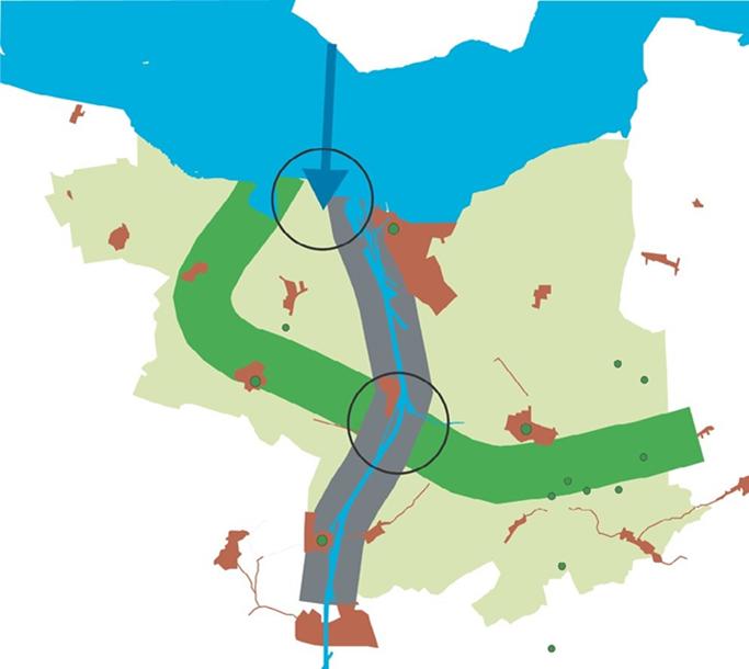 De hoge zeewering langs de kust van Zeeuws-Vlaanderen is meer dan een waterstaatkundig werk. Vanuit de polders is het zeewater, dat zo’n grote invloed heeft gehad op het landschap, nauwelijks meer te ervaren. De dijk zelf echter is een bijna onontkoombare verwijzing naar de delta. Ook zijn de vele kleinere bedijkingen die vanaf de middeleeuwen zijn aangelegd nog goed te zien en vormen de vele kreken en kreekrestanten een tastbare herinnering aan het ontstaan van het landschap. Ze delen het vlakke land op in kamers met verschillende karakters. Vele dijken zijn ook beplant, daardoor nog herkenbaarder en tevens versterkt dit het ‘kamergevoel’. Omdat de wegen meestal midden door de polders lopen, bevind je je steeds in één van die kamers om na een volgende dijk in een andere ruimte te komen.