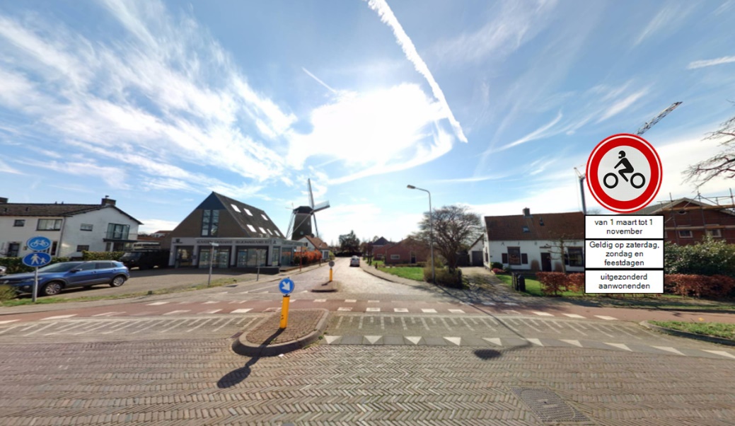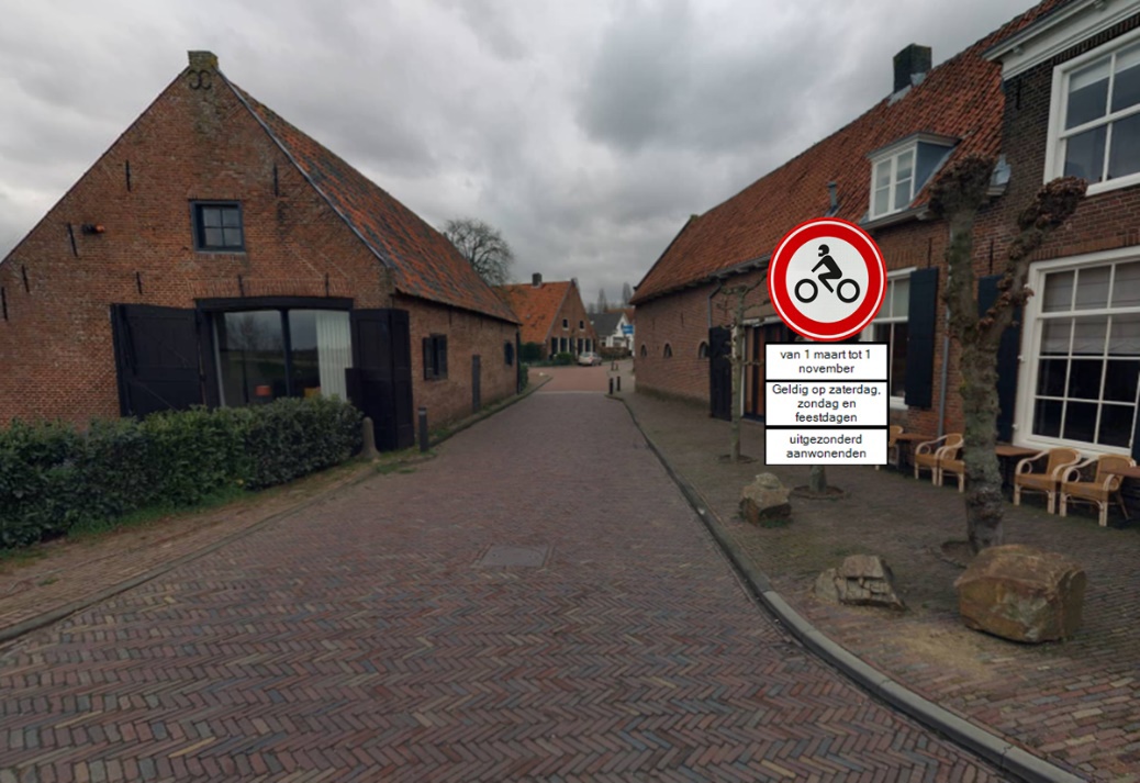 de leefbaarheid van deze historische dorpskern wordt vergroot door het invoeren van een inrijverbod voor motorfietsen;