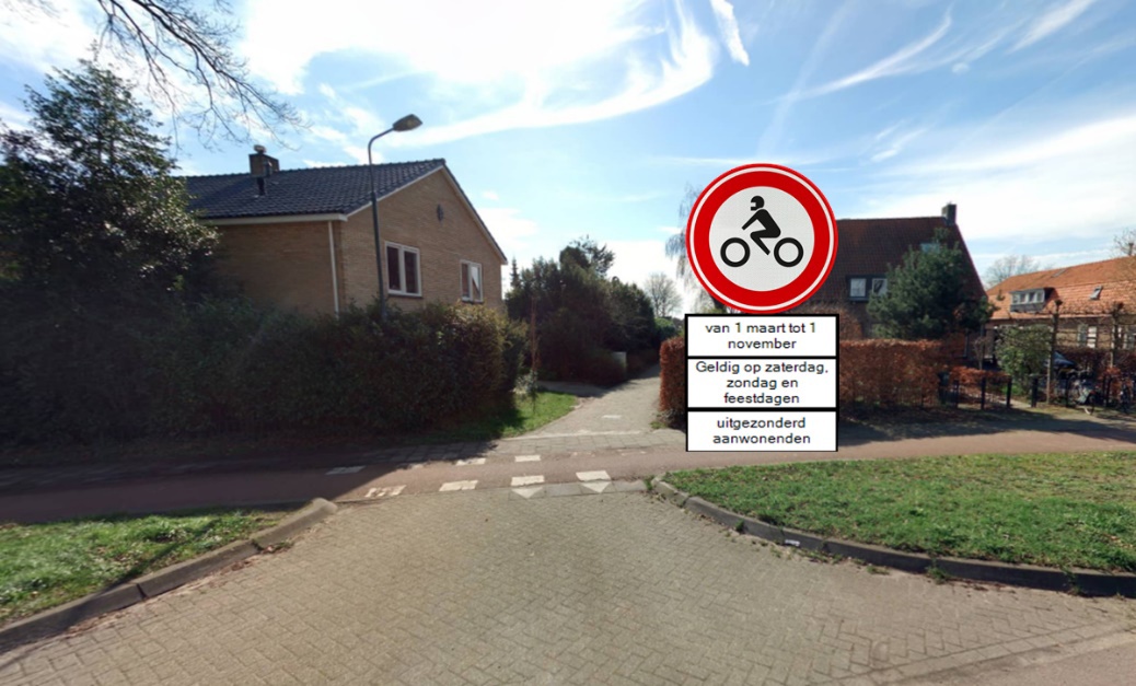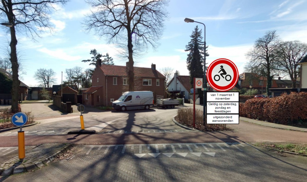 het beperken van de tijdsduur van het inrijverbod voor alleen weekenden en feestdagen, genoemd door de Rijksoverheid, middels het plaatsen van onderborden met de tekst “Geldig op zaterdag, zondag en feestdagen”;