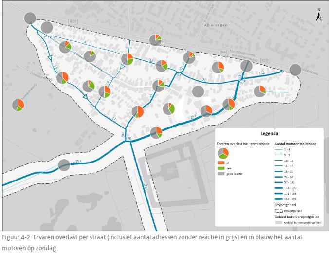 het aannemelijk is dat respondenten, die aan straten wonen waar de meeste motorfietsen gemeten zijn, de meeste overlast ervaren;