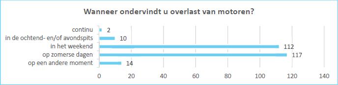 de respondenten in de enquête hebben aangegeven dat de meeste overlast ervaren wordt in de weekenden en op zomerse dagen (zie onderstaande tabel);