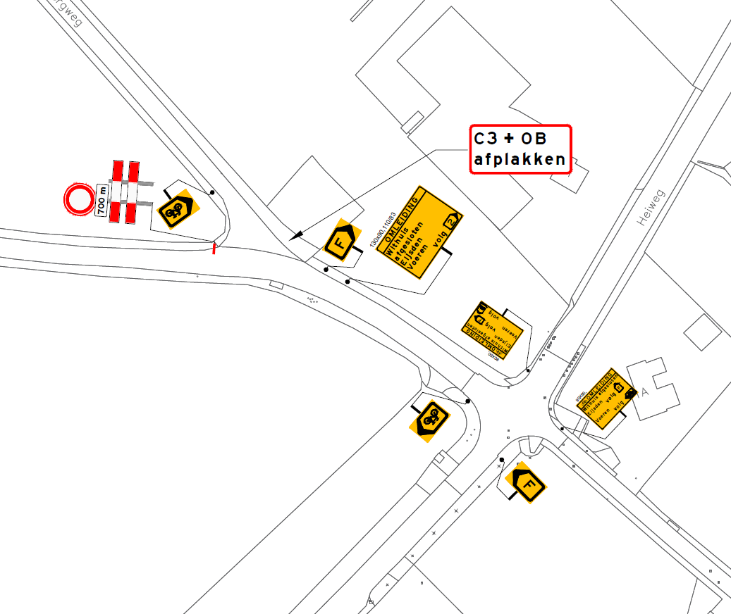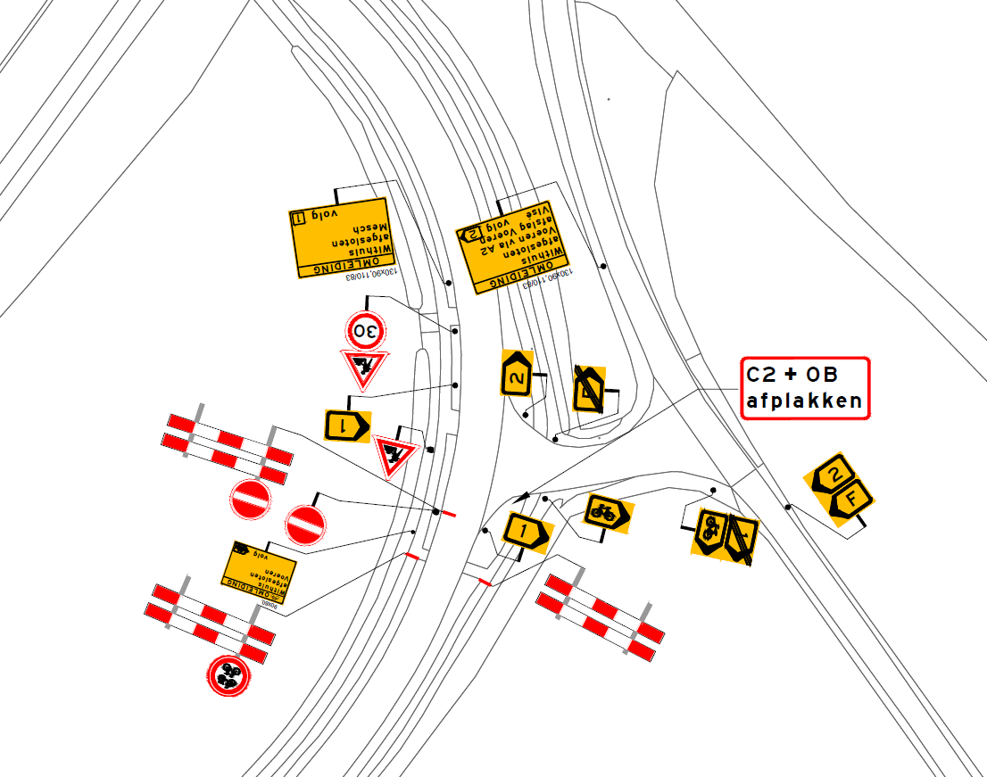 In overeenstemming met de tekeningen in bijlage 1 tot en met 6, die onderdeel zijn van dit besluit, wordt besloten tot de volgende verkeersmaatregelen: