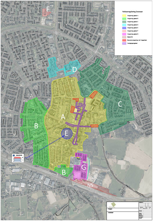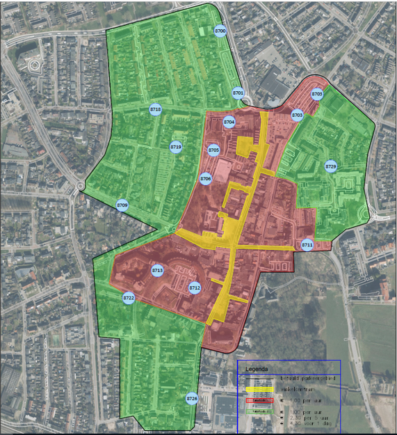 Op de volgende kaart zijn de zones voor het vergunninghouders parkeren aangegeven.