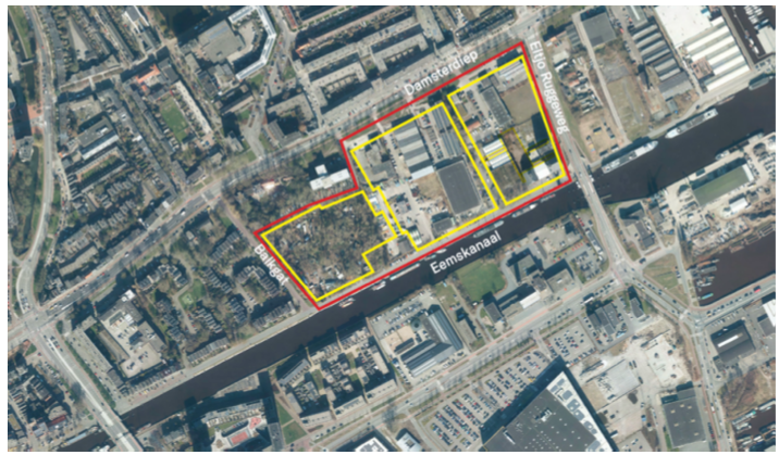 Afbeelding 1: Plangebied Stadshavens met afbakening van deelgebied Noordwest (rood) en deelplannen (geel)
